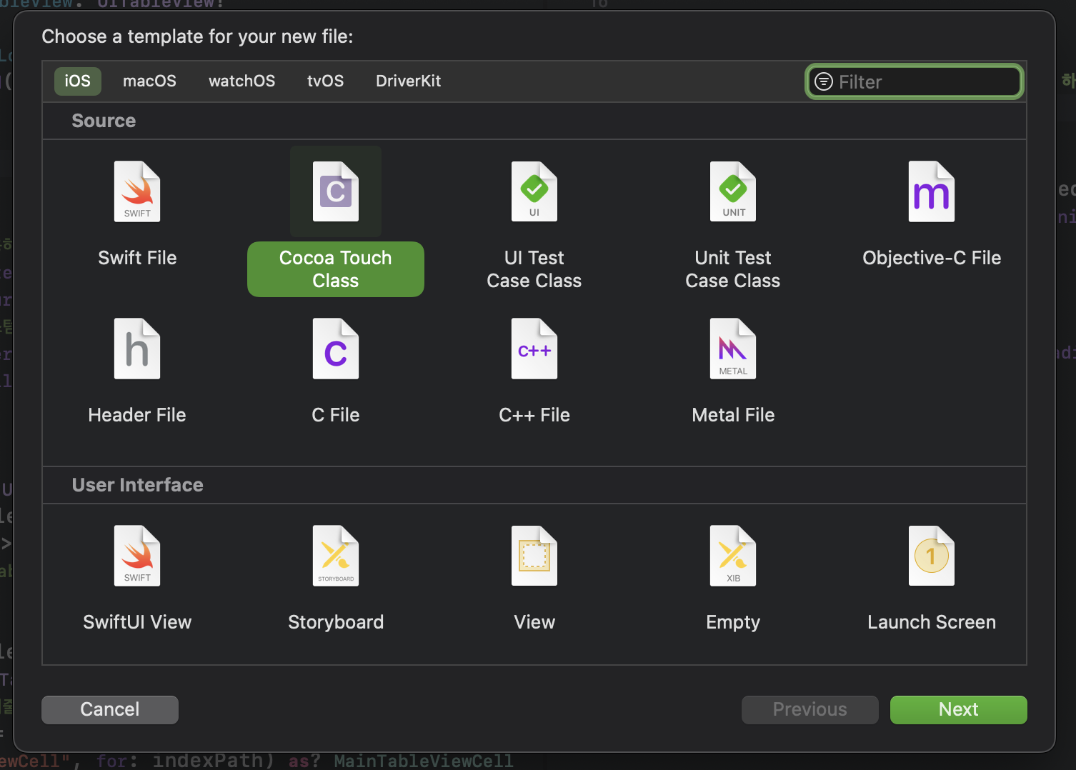 3. TableView에 사용할 TableViewCell을 xib파일로 정의