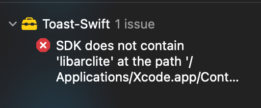 - https://stackoverflow.com/questions/77139617/clang-error-sdk-does-not-contain-libarclite-at-the-path