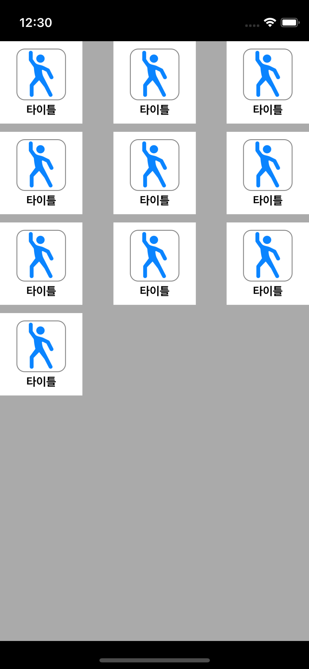 * 한 줄짜리 수평 스크롤이 가능한 CollectionView를 만들기 위해서는, CollectionView의 높이가 셀의 높이의 2배보다 작아야 함